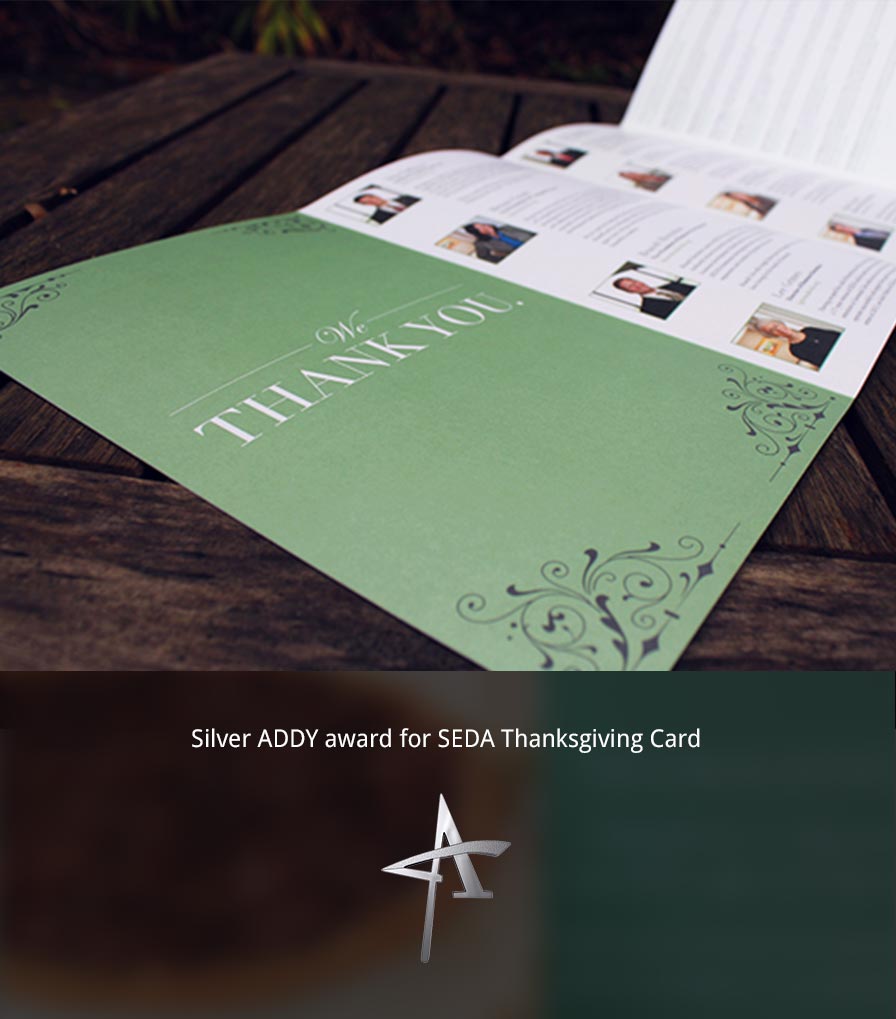 In business negotiations, it's all about what the parties can ‘bring to the table.' When it comes to Thanksgiving, many of us are celebrating bringing items to the table of a different sort – food! So we combined the two meanings into one card designed to give thanks to all those who have invested in, supported and considered our region while also presenting what SEDA brings to the table by means of brief bios about our talented staff.