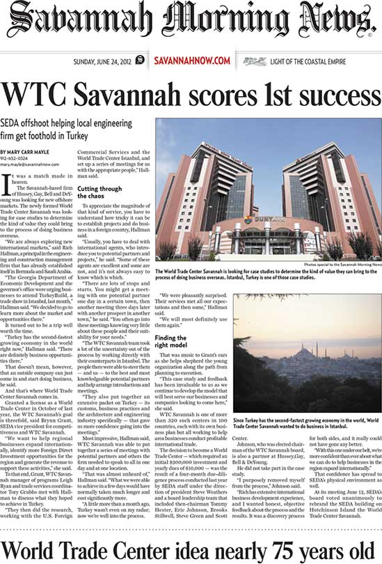 It wasn't long after WTCSav was granted its license that it had the opportunity to put its international efforts to work for Savannah-based engineering and construction-management firm Hussey, Gay, Bell & DeYoung.